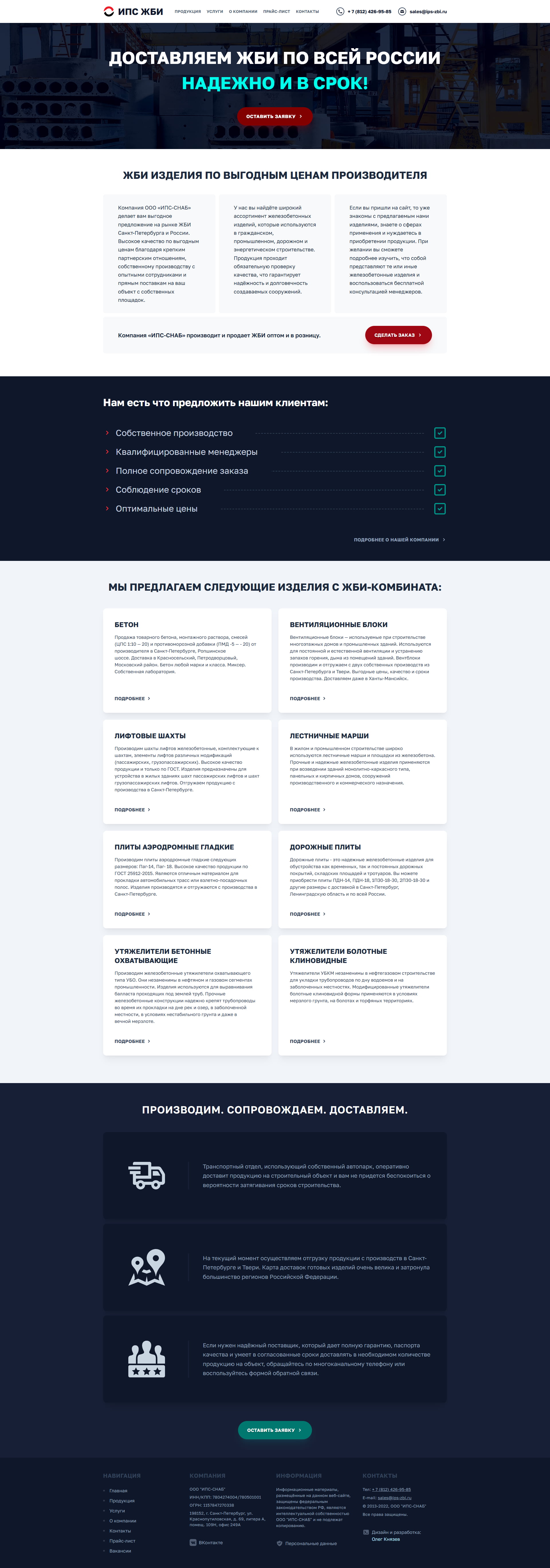 Дизайн и разработка сайта для поставщика ЖБИ-продукции из Санкт-Петербурга — группы компаний "ИПС ЖБИ"